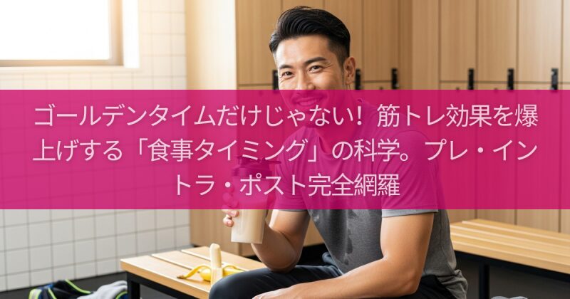 食事 ゴールデンタイムだけじゃない!筋トレ効果を爆上げする「食事タイミング」の科学。プレ・イントラ・ポスト完全網羅 この記事では、筋トレ効果を爆上げするための「食事タイミングの科学」を徹底解説します。トレーニング前(プレ)、トレーニング中(イントラ)、トレーニング後(ポスト)の各タイミングで、何を・なぜ・いつ食べるべきなのか。その全ての答えがここにあります。食事のタイミングを制して、あなたの筋トレ効果を最大化させましょう。 2025.10.19 食事