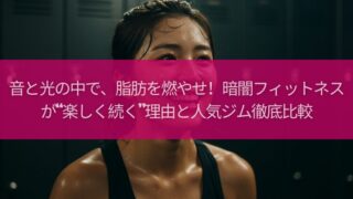 ジム・パーソナルジム 音と光の中で、脂肪を燃やせ!暗闇フィットネスが“楽しく続く”理由と人気ジム徹底比較 この記事では、なぜ多くの人が暗闇フィットネスの“中毒”になるのかという魔法のような魅力から、あなたにピッタリのジムを見つけるための選び方、そしてFEELCYCLEやb-monsterといった業界のトップランナーまでを徹底的に比較・解説します。もう、運動を「義務」と捉えるのはやめましょう。最高の非日常体験で、楽しみながら脂肪を燃やす、新しい自分との出会いがあなたを待っています。 2025.10.11 ジム・パーソナルジム