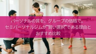 ジム・パーソナルジム パーソナルの質を、グループの価格で。セミパーソナルジムが“賢い選択”である理由とおすすめ比較 この記事では、なぜセミパーソナルジムが、コストを抑えつつ最高の結果を求める現代人にとっての「最も賢い選択」となり得るのか、その理由から、あなたに最適なジムを見つけ出すための具体的な選び方、そして最新の人気ジムまでを徹底的に比較・解説します。もう、何かを諦める必要はありません。 2025.10.11 ジム・パーソナルジム