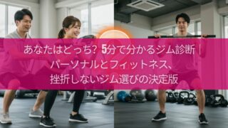 ジム・パーソナルジム あなたはどっち?5分で分かるジム診断|パーソナルとフィットネス、挫折しないジム選びの決定版 この記事では、そんな「ジム選びの失敗」をなくすため、あなたの**「目的」「予算」「性格」**に本当にマッチするのはどちらなのかを、あらゆる角度から徹底的に比較・分析します。さらに、後悔しないジム選びを実現するための具体的なチェックリストまで網羅。 2025.10.08 ジム・パーソナルジム