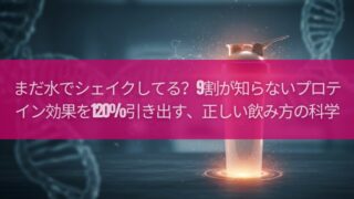 食事 まだ水でシェイクしてる?9割が知らないプロテイン効果を120%引き出す、正しい飲み方の科学 この記事では、そんな「もったいない」飲み方から卒業し、プロテインの効果を120%引き出すための科学に基づいた完全ガイドをお届けします。あなたの目的や体質に合わせて「種類」「タイミング」「割り方」を最適化することで、プロテインは単なる栄養補給から、あなたの身体を劇的に進化させる戦略的パートナーへと変わります。さあ、あなたのトレーニング効果を最大化する知識を身につけましょう。 2025.10.05 食事