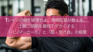 筋トレ Tシャツの袖を破壊せよ。現場監督が教える、上腕二頭筋を最短でデカくする「ハンマーカール」と「脱・巻き肩」の極意