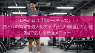 ジム・パーソナルジム ジム初心者は「胸からやるな」!?筋トレの効果を最大化する「正しい順番」と、週2回で変わる最強メニュー この記事では、ジムで迷子になっているあなたが、今日から自信を持ってトレーニングに臨めるよう、「筋トレの効果を最大化するマシンの正しい順番」と、「週2回でOKな、初心者のための最強全身メニュー」を、そのまま真似できる形で徹底的に解説します。もうジムで迷うのは終わりにしましょう。 2025.10.21 ジム・パーソナルジム