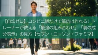 食事 【自炊ゼロ】コンビニ飯だけで筋肉は作れる!トレーナーが教える「最強の組み合わせ」と「裏の成分表示」の見方【セブン・ローソン・ファミマ】 この記事では、現役トレーナーの視点から、大手3社(セブンイレブン・ローソン・ファミリーマート)をフル活用して、包丁を一切握らずに理想の体を作るための「完全攻略ガイド」をお届けします。 2025.11.22 食事