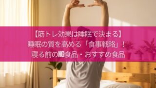 食事 【筋トレ効果は睡眠で決まる】睡眠の質を高める「食事戦略」!寝る前のNG食品・おすすめ食品 この記事では、筋トレ民が見落としがちな「睡眠と食事の密接な関係」に焦点を当て、なぜ睡眠が筋トレ効果に不可欠なのか、睡眠不足がもたらす悪影響、そして「最高の睡眠」を作り出すための具体的な「食事戦略」を徹底解説します。寝る前のNG食品・おすすめ食品も紹介。 2025.10.29 食事